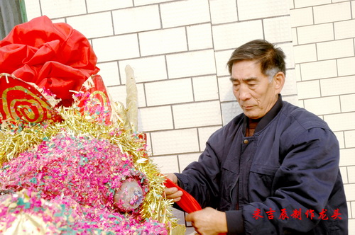 1986年初,米吉辰继承了上一代传下来的铁龙灯艺术,从制作、乐器配合到舞龙形式全套继承。铁龙灯是民间舞龙,是一个集体项目,人数众多,规模宏大。铁龙灯队员都是村里的农民,米吉辰为了调教好这支队伍,费尽了心思。每次集中的排练演出,米吉辰都要提前一、两天在村里的广播上多次点名通知,直到队员一个不缺为止。米吉辰精通击鼓、敲锣、舞龙,技术全面。他把年青的民舞队员,召集起来进行训练,往往是训练了敲鼓又指点敲锣,训练了队形又指点舞龙。他训练队员队列,队员之间的距离,要分毫不差,两排之间的行距,要前后一致。他指导舞龙,要求每位队员都要聚精会神、步调一致。要求举龙珠的队员,舞的动作十分规范,上下左右前后中规中矩;举龙头的队员要随着龙珠的转动如影随形,登高扎低,游走跑动,亦步亦趋,分毫不差,举龙身和龙尾的队员要随着龙头上下左右波动、转动和跑动,动出各种造型;他指导敲鼓花样繁多,一会敲边,一会击中,一会单点,一会双点和多点,每位击鼓队员,都被他调教得技艺高超。他培训敲锣也是如此,使锣声和鼓点配合得天衣无缝,他才满意。他也对道具进行了革新,他把40多斤重的铁龙头,改革成20多斤重的钢丝龙头,使得舞动起来方便。他把分离的铁龙灯和荷花灯两门艺术结合在一起,使得铁龙灯艺术风格由刚猛雄壮,揉进了委婉缠绵,使人耳目一新。每年的春节期间,当是米吉辰最忙的时候,他都要组织队伍演出,经常累的喝不上水、吃不上饭,老伴说他是“文艺疯子”,他哈哈一笑置之,他经常是早起晚睡,东奔西走,不在这家在那家,不在这村在那村,铁龙灯拴着他的心。